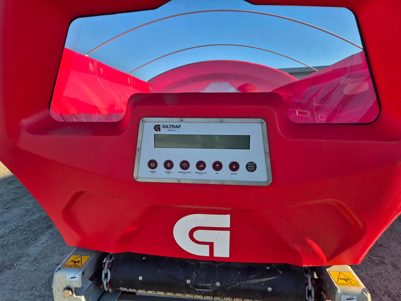 Galvanised frame and plastic hopper. 8mm thick, 780mm wide belt.